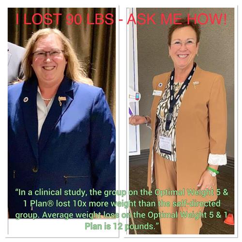 Before and After. Average weight loss on the Optimal Weight 5 & 1 Plan® is 12 pounds. Clients are in weight loss, on average, for 12 weeks.